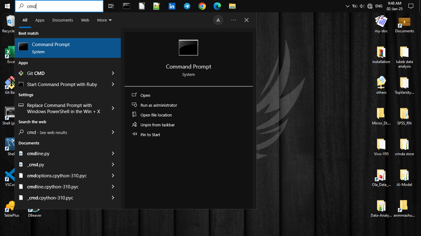 - After completion, open Command Prompt: